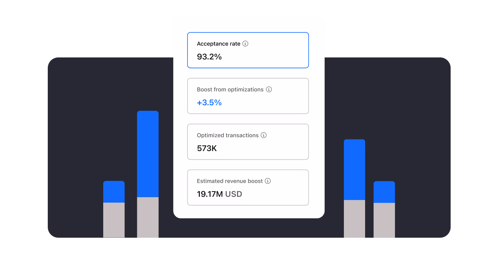 Optimieren Sie jede Zahlung automatisch mit einer KI, die darauf ausgelegt ist, Konversionen zu steigern und mehr Umsatz zu generieren.