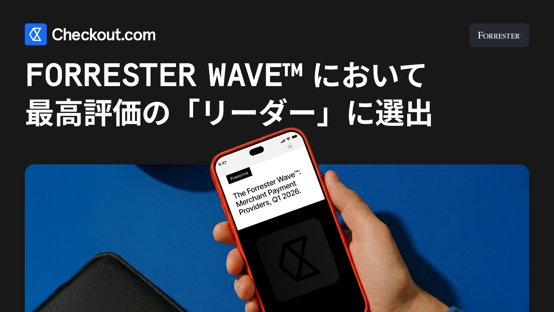 デジタル決済プラットフォームを提供するCheckout.com(チェックアウト・ドットコム)(本社:英国ロンドン、創業者兼CEO:ギヨーム・プセ)は、グローバル調査会社Forrester Researchが発行する評価レポート「The Forrester Wave™: Merchant Payment Providers, Q1 2026」において、最高評価の「Leader」に選出されたことをお知らせします。